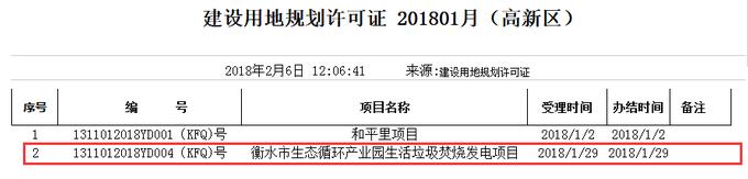 近日河北衡水市城鄉(xiāng)規(guī)劃局公示了最新的《建設(shè)用地規(guī)劃許可證201801月(高新區(qū))》,公示顯示衡水市生態(tài)循環(huán)產(chǎn)業(yè)園生活垃圾焚燒發(fā)電項(xiàng)目建設(shè)用地規(guī)劃許可證已于2018年1月29日辦結(jié)。