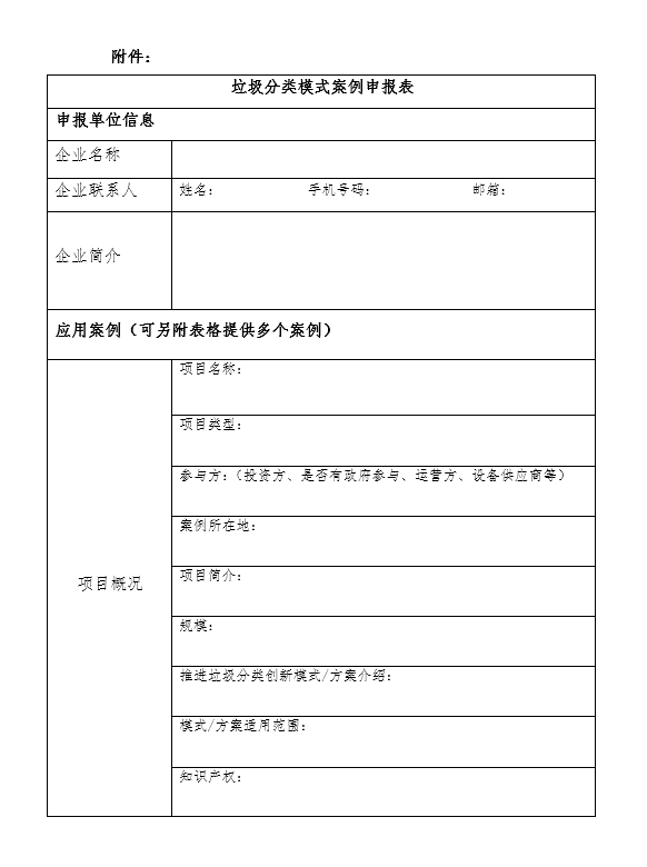 附件:垃圾分類模式案例申報(bào)表