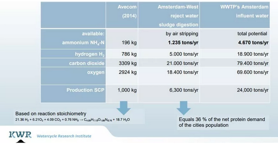 分析結(jié)果顯示污水中蘊含的單細(xì)胞蛋白SCP產(chǎn)量潛力是相當(dāng)可觀的:阿姆斯特丹西區(qū)污水廠一年的污泥消化液能產(chǎn)生6300噸SCP,能滿足城市人口36%的凈蛋白需求。在經(jīng)濟(jì)層面而言,SCP也有可觀的價值。關(guān)鍵是找出從污水中高效提取氨的方法。另外研究團(tuán)隊還對蛋白的營養(yǎng)價值、可消化性、變應(yīng)原性以及公眾接受度進(jìn)行了初步評估。