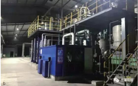 對生物質(zhì)炭的深入研究催生了生物質(zhì)廢棄物炭化與生物質(zhì)炭農(nóng)業(yè)應(yīng)用的有機結(jié)合,初步形成了以熱裂解為基礎(chǔ)的生物質(zhì)工程與產(chǎn)業(yè)。2017年4月,農(nóng)業(yè)部將秸稈炭化還田列為全國秸稈資源化綜合利用的十大模式之一。2017年8月,秸稈工業(yè)化生產(chǎn)與炭基肥生態(tài)農(nóng)業(yè)技術(shù)通過鑒定,被環(huán)保企業(yè)作為產(chǎn)業(yè)技術(shù)轉(zhuǎn)化而商業(yè)化推廣。2017年11月底,國家能源局和環(huán)保部發(fā)布通知,明確支持生物質(zhì)炭化和炭基肥生產(chǎn)作為煤電生物質(zhì)能源耦合聯(lián)產(chǎn)的新模式。秸稈年處理量1.5萬噸,生物質(zhì)炭年產(chǎn)5000 噸,生物質(zhì)炭基肥年產(chǎn)2萬噸的生產(chǎn)系統(tǒng)已經(jīng)投入運行并快速商業(yè)化推廣(圖 3)。這一套生產(chǎn)系統(tǒng)與多種形式的秸稈收儲運系統(tǒng)結(jié)合后可以形成秸稈年處理量1000萬噸,生產(chǎn)生物質(zhì)炭 350萬噸,炭基肥1200多萬噸的新型生物質(zhì)炭基產(chǎn)業(yè),其產(chǎn)值將達到300—400億元。這一套集廢棄物處理、能源利用與肥料生產(chǎn)為一體的系統(tǒng)形成了一個巨大產(chǎn)業(yè)集群,將成為農(nóng)業(yè)源實體經(jīng)濟的新增長點,也提出了科技、工程、管理和金融融合服務(wù)的新需求。