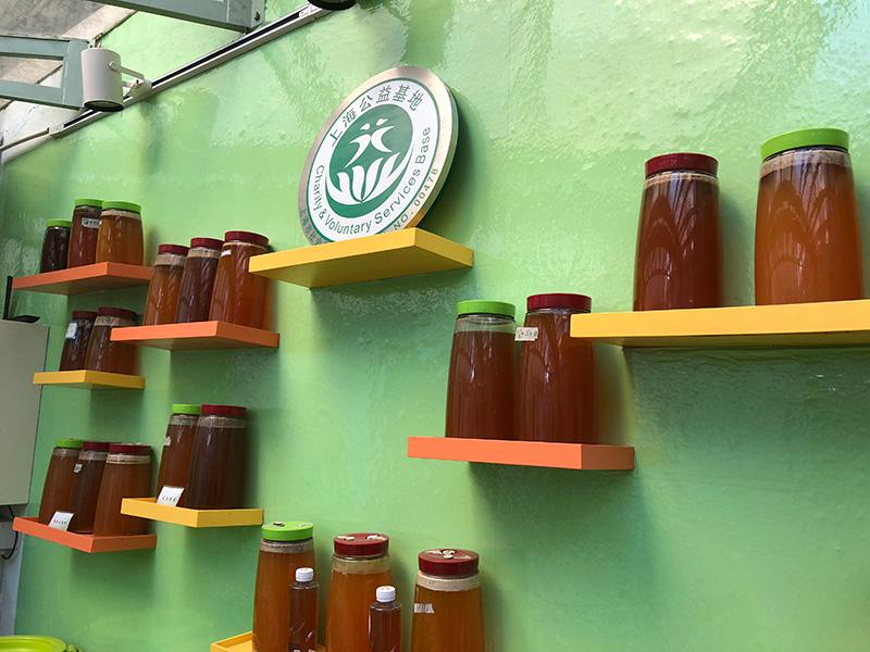 每天下午,工作人員會定時將專用桶內的廚余垃圾放入粉碎機,一邊加入具有除臭、發(fā)酵作用的EM菌種,一邊攪拌粉碎。粉碎后已經打成泥狀的垃圾全部裝入白色塑料桶密封發(fā)酵,每隔2至3天,來自崇明、青浦、奉賢、金山等地的合作農場都會來小區(qū)取走半成品肥料,運送至農場進行二次堆肥。經過降低水分、60℃高溫發(fā)酵等程序,大約15天后,廚余垃圾就能夠發(fā)酵成有機肥,用于種植蔬菜和稻米。