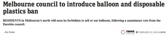 日前,作為推動環(huán)保的一部分,墨爾本一市政廳將實(shí)行氣球和一次性塑料禁令。到那時,墨爾本三個區(qū)的商戶和居民將很快被禁止出售和購買氣球以及其他塑料制品,包括一次性食物餐盒和杯子。