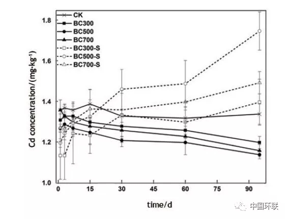 圖8 不同培養(yǎng)時(shí)間下生物炭(BC300,BC500,BC700)和改性生物炭(BC300-S,BC500-S,BC700-S)對(duì)土壤全量Cd濃度變化的影響