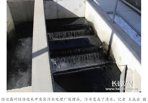 近日,記者在霸州經(jīng)濟(jì)技術(shù)開發(fā)區(qū)污水處理廠,看到幾米高的污水處理池中,泛著黃色的泡沫。然而,經(jīng)過二沉池、混凝沉淀池、懸浮濾料濾池、紫外線消毒渠等工藝處理后,污水卻變成清水從出水口流出。