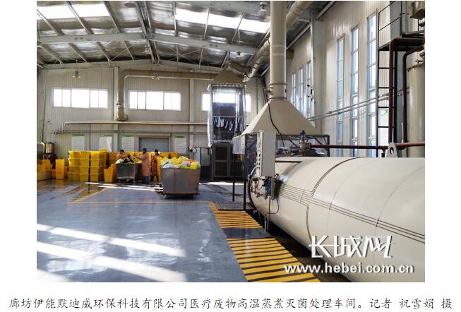 當(dāng)日下午,當(dāng)記者來到廊坊伊能默迪威環(huán)保科技有限公司醫(yī)療廢物高溫蒸煮滅菌處理車間時(shí),看到工作人員正對(duì)剛剛送達(dá)的醫(yī)療廢物進(jìn)行卸車整理。該公司技術(shù)工程師劉振興告訴記者,目前公司醫(yī)廢處置量5-6噸,采用國內(nèi)先進(jìn)的高溫蒸汽集中處置工藝,醫(yī)廢經(jīng)過高溫蒸煮、破碎后形成固體垃圾,再運(yùn)至生活垃圾填埋場(chǎng)進(jìn)行填埋。“公司有7輛運(yùn)輸車定時(shí)到醫(yī)療機(jī)構(gòu)收集醫(yī)廢,車輛裝有最先進(jìn)的北斗定位系統(tǒng),全程物聯(lián)網(wǎng)管理,對(duì)收運(yùn)過程和處置過程全程監(jiān)控,實(shí)現(xiàn)了科技化收運(yùn)處置。”劉振興說。