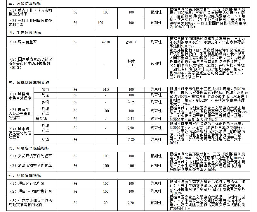 根據(jù)國家、省環(huán)境保護(hù)“十三五”規(guī)劃相關(guān)要求,結(jié)合咸寧實(shí)際情況,“十三五”期間環(huán)保規(guī)劃指標(biāo)如下。