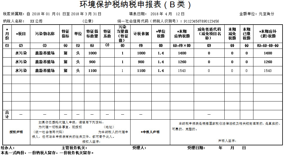 7. 環(huán)境保護(hù)稅納稅申報(bào)表(B表):適用于除A類申報(bào)之外的其他納稅人,包括按次申報(bào)納稅人、適用環(huán)境保護(hù)稅法所附《禽畜養(yǎng)殖業(yè)、小型企業(yè)和第三產(chǎn)業(yè)水污染物當(dāng)量值》表的納稅人和采用抽樣測(cè)算方法計(jì)算污染物排放量的納稅人。