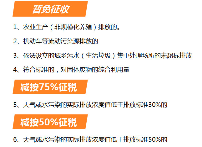 大氣或水污染:(《環(huán)保稅法》第十三條)納稅人排放應(yīng)稅大氣污染物或者水污染物的濃度值低于國(guó)家和地方規(guī)定的污染物排放標(biāo)準(zhǔn)30%的,減按75%征收環(huán)境保護(hù)誰。納稅人排放應(yīng)稅大氣污染物或者水污染物的濃度值低于國(guó)家和地方規(guī)定的污染物排放標(biāo)準(zhǔn)50%的,減按50%征收環(huán)境保護(hù)稅。