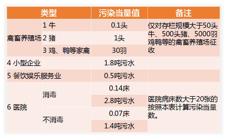 禽畜養(yǎng)殖業(yè)、小型企業(yè)和第三產(chǎn)業(yè)水污染物污染當(dāng)量值