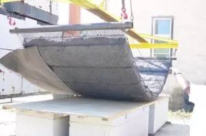 對(duì)于活性炭這類沉降性能較差的材料而言,是需要進(jìn)行預(yù)濕處理以去除材料內(nèi)空氣來(lái)幫助減少其水中浮力的。在施工過(guò)程中,如果采用此類沉降性能較差的材料,或是遇到水體流速較快不利于施工的情況,可以考慮使用水下擴(kuò)散器,蛤形或其他抓斗將覆蓋材料帶入水下釋放,幫助其更好的完成覆蓋。另外,使用土工織物包裹AquaGate一類的復(fù)合材料或其他活性復(fù)合材料進(jìn)行覆蓋,亦可以增加施工的可操作性。一般情況下,這種土工織物是通過(guò)機(jī)械設(shè)備或潛水員進(jìn)行水下覆蓋的。這類包裹著活性覆蓋材料的土工織物,例如ReactiveCoreMat材料,在通常情況下覆蓋材料容量較小,厚度也較薄。但如工程需要,也可以通過(guò)使用更厚的石龍材料以增大土工織物的覆蓋材料容量,例如:MarineMattress材料便是使用了這一技術(shù)。另外,鉸接式砌塊或其他防護(hù)墊,均可用來(lái)放置或包裹覆蓋材料。