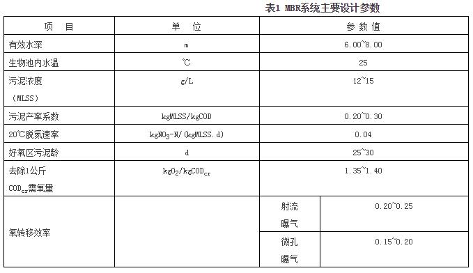 生化處理系統(tǒng)設(shè)計(jì)參數(shù)取值見表1。