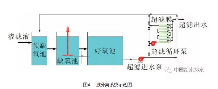 在許多垃圾滲濾液處理工程中,MBR系統(tǒng)采用管式膜超濾分離系統(tǒng),超濾進(jìn)水泵由好氧池末端取水,進(jìn)入管式膜濃縮又回流到生物池內(nèi)。將含有硝酸鹽的超濾回流管接至缺氧池進(jìn)水端,同樣可以起到混合液內(nèi)回流的作用,提高脫氮效率、節(jié)省能耗。