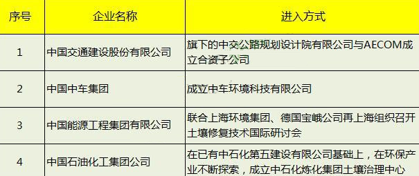 圖表2017年進入土壤修復(fù)領(lǐng)域的央企