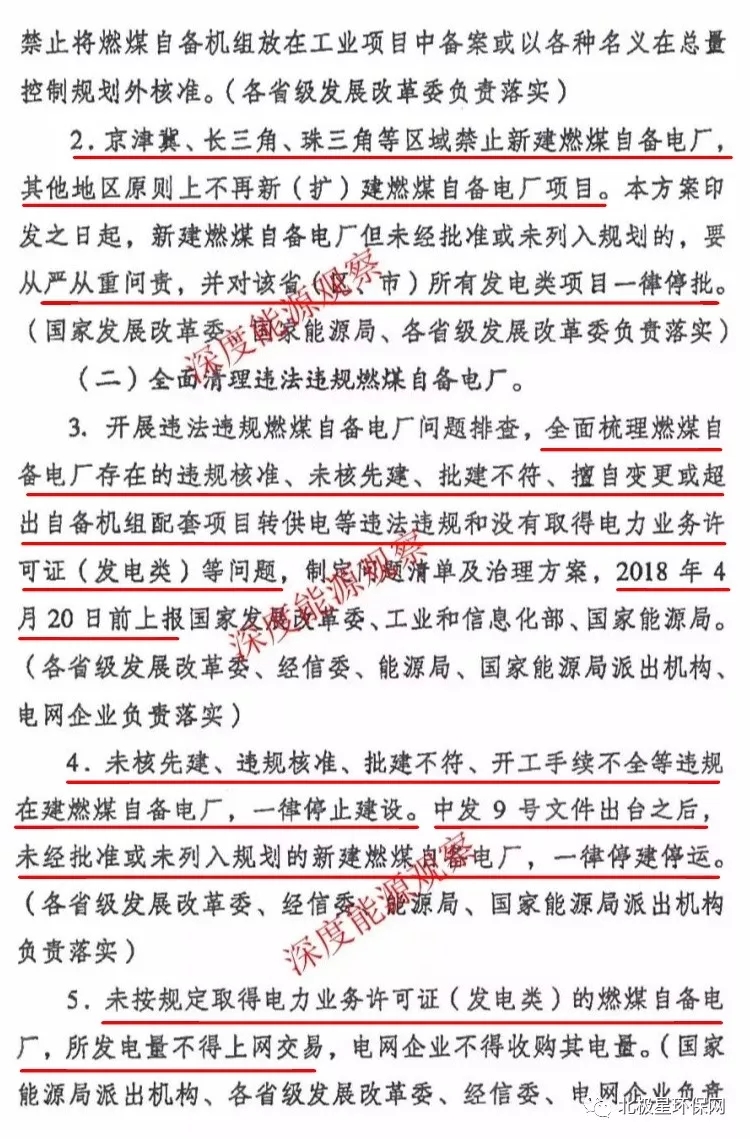 全面梳理燃煤自備電廠的違規(guī)準(zhǔn)備、批建不符等各類問題,4月20號(hào)前上報(bào)發(fā)改委、工信部、能源局。對(duì)于違規(guī)在建的燃煤燃煤自備電廠,一律停建!中發(fā)9號(hào)文之后,未經(jīng)批準(zhǔn)或未未列入規(guī)劃的新建燃煤自備電廠,一律停建、停運(yùn)!