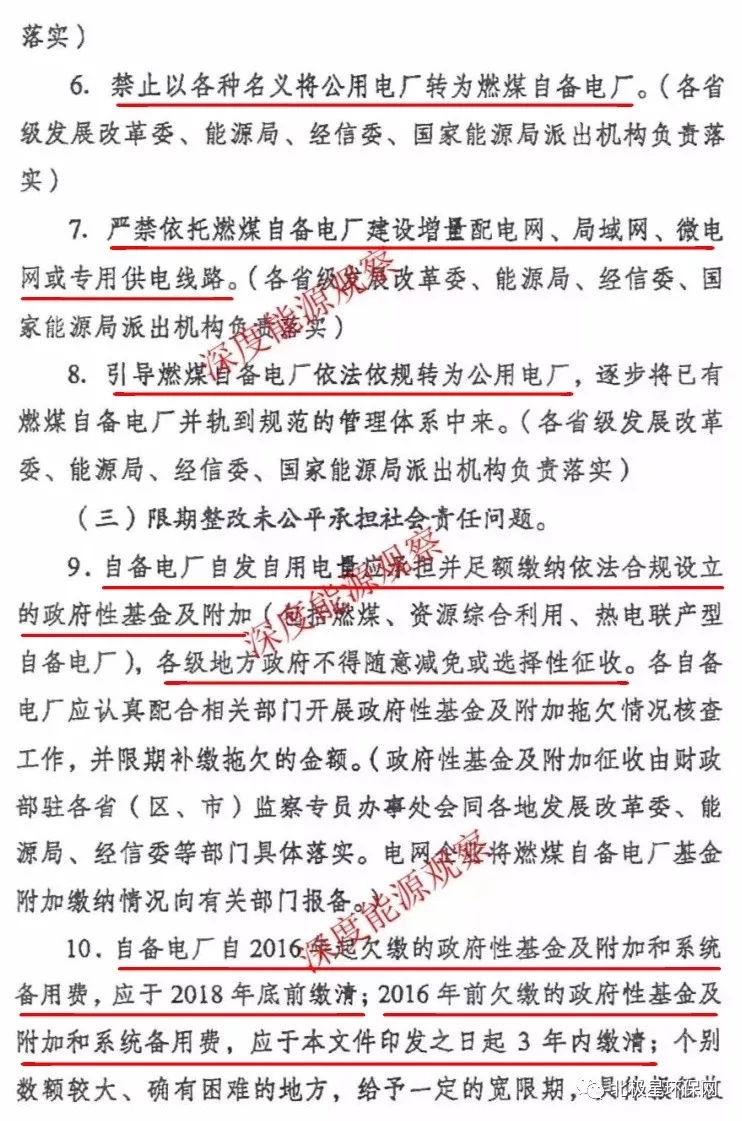 自備電廠自2016年起欠繳政府性基金及附加和系統(tǒng)備用費(fèi)的,2018年底前繳清。2016年前欠繳的,于3年內(nèi)繳清。