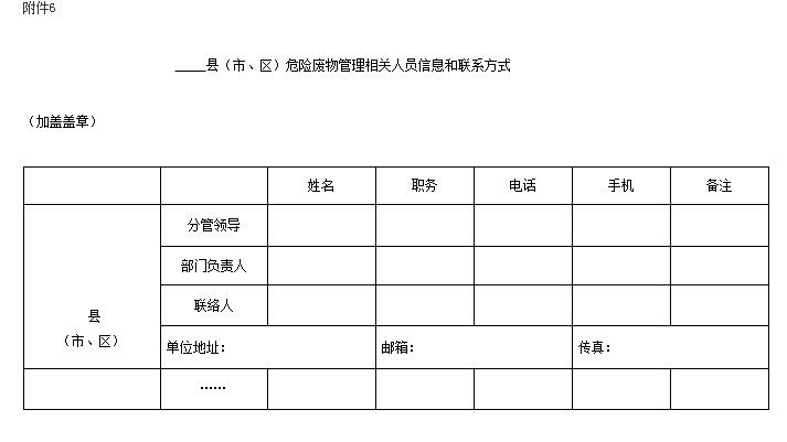 6. 縣(市、區(qū))危險廢物管理相關人員信息和聯(lián)系方式