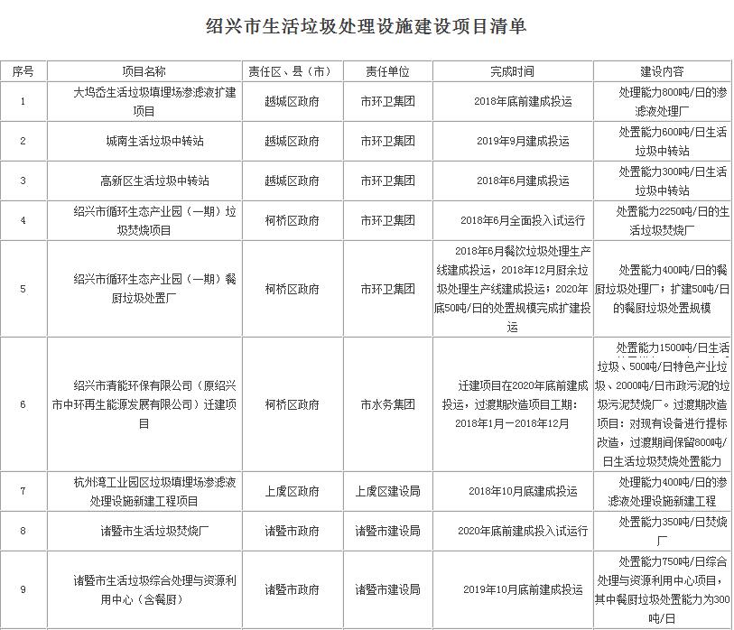 2.紹興市生活垃圾處理設(shè)施建設(shè)項(xiàng)目清單