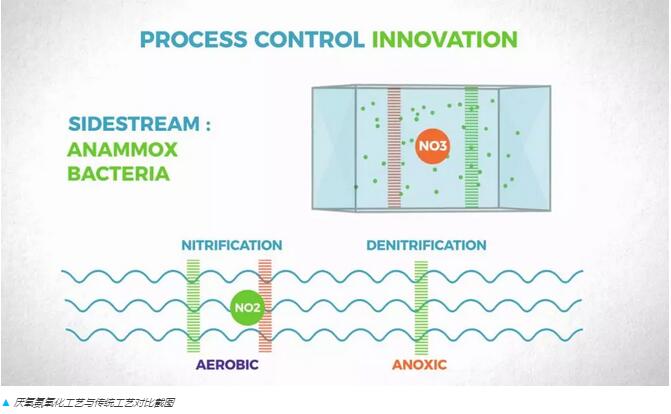 Anammox菌可將氨氮和亞硝酸氮結(jié)合轉(zhuǎn)化為氮?dú)?。這個(gè)工藝過(guò)程節(jié)省了能源,而且占地面積更小。
