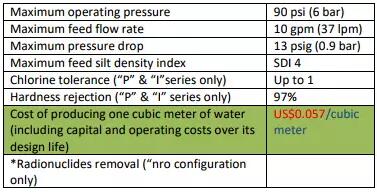 這款名叫CamelTrain?的飲用水處理單元采用全膜設(shè)計(jì),運(yùn)用超濾和納濾技術(shù),由Bondurant Technologies負(fù)責(zé)研發(fā)和銷售。Nimon稱它是世界第一個(gè)便攜式納濾凈水裝置,能夠去除病毒和細(xì)菌、包囊、重金屬,以及污染水體中的顏色、氣味和放射性核苷酸等。目前的出水接近反滲透的水質(zhì),但通量高達(dá)38L/min,單位成本低至5美分/m3。該產(chǎn)品占地面積很小,而且濾網(wǎng)更換頻率低,可以像旅行箱一樣拉動或者背著行走,可以接通直流或者交流電源使用。目前其重量約為90kg,啟動時(shí)間不到1分鐘。