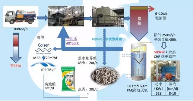 合肥市餐廚垃圾資源化利用和無害化處理工程(一期)項(xiàng)目則采用的是“水洗分選預(yù)處理+高效厭氧+生物好氧堆肥”路徑。項(xiàng)目日處理量為200噸/日,有機(jī)肥產(chǎn)量近60噸/日。利用黑水虻輔助堆肥處理,極大地降低了堆肥處理時(shí)間,加強(qiáng)了堆肥處理效率,而經(jīng)過水洗+高效厭氧處理的純凈物料又使得黑水虻的養(yǎng)殖效果更佳,而黑水虻本身亦可用于蛋白質(zhì)生產(chǎn)。采用黑水虻養(yǎng)殖工藝極大地增長(zhǎng)了餐廚垃圾資源化收益。