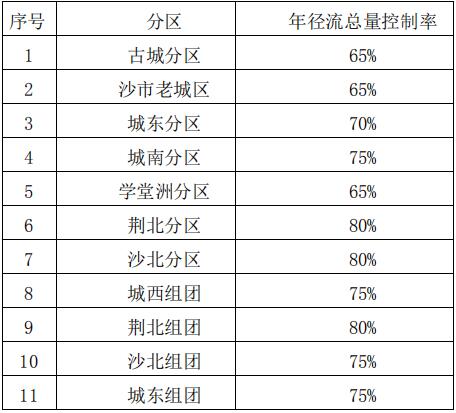 各海綿分區(qū)年徑流量控制指標詳下表: