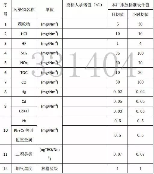 滿足國標《生活垃圾焚燒污染控制標準》(GB18485-2014)和最新歐盟2010/75/EU標準的要求,并適當提高部分指標的排放標準,以適應經(jīng)濟發(fā)展對環(huán)境保護的需要。煙氣排放污染物排放濃度指標表如下: