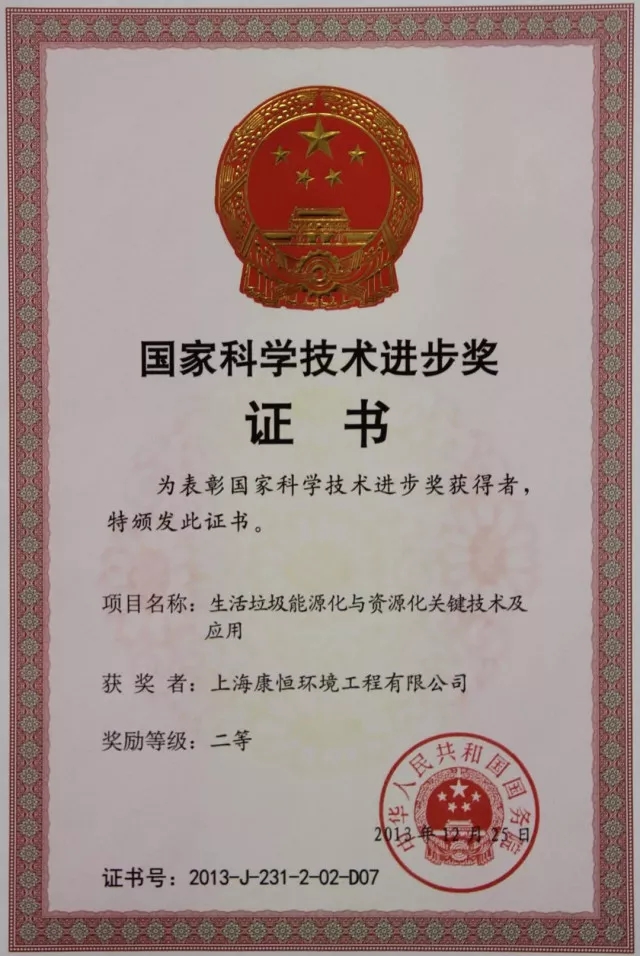 康恒環(huán)境是上海市高新技術企業(yè),已獲授權50余項國家專利,垃圾焚燒技術被評為國家科技進步二等獎、教育部科技進步一等獎等多項獎;擁有電力行業(yè)(新能源發(fā)電專業(yè))乙級、環(huán)境工程設計專項(污染修復工程)乙級、環(huán)保工程專業(yè)承包二級工程資質(zhì),已通過ISO9001、ISO14001和OHSAS18001體系認證;榮獲國家工商總局守合同重信用企業(yè)、上海市專利試點企業(yè)、上海市優(yōu)秀高新技術企業(yè)、創(chuàng)新型企業(yè)等榮譽稱號。