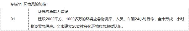 強(qiáng)化環(huán)境應(yīng)急隊(duì)伍建設(shè)和物資儲備。探索政府、企業(yè)、社會多元化環(huán)境應(yīng)急保障力量共建模式,開展環(huán)境應(yīng)急隊(duì)伍標(biāo)準(zhǔn)化、社會化建設(shè)。以石化、化工、重金屬、印染、集中式污水處理、危廢處置等行業(yè)為重點(diǎn),加強(qiáng)企業(yè)和園區(qū)環(huán)境應(yīng)急物資儲備,構(gòu)建市級環(huán)境應(yīng)急物資庫。積極推動環(huán)境應(yīng)急能力標(biāo)準(zhǔn)化建設(shè)。