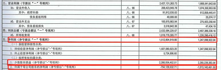 唯一的可能就是得益于少數股東損益補正(凈利潤=歸母凈利潤+少數股東損益),也間接說明了中國節(jié)能環(huán)保集團自身全資子公司虧損很嚴重。