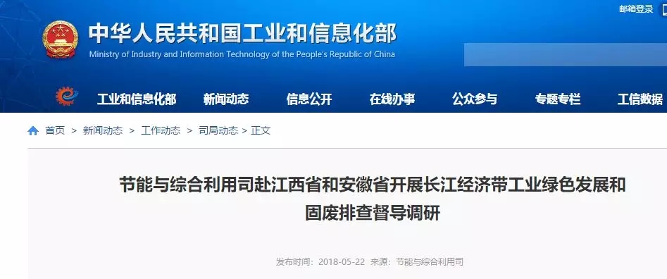 長江經(jīng)濟帶工業(yè)綠色發(fā)展和固廢排查督導(dǎo)調(diào)研