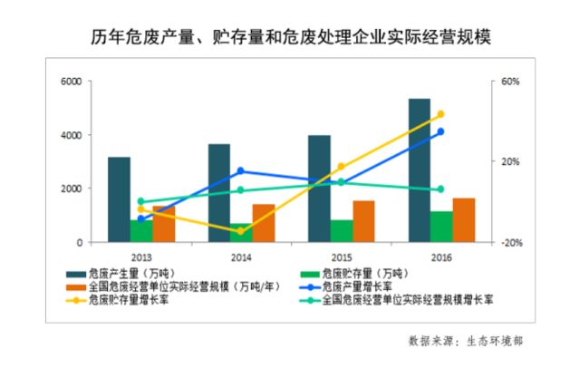 2016年,新危廢名錄發(fā)布,推動危廢科學(xué)化、精細(xì)化管理;同年11月,《“十三五”生態(tài)環(huán)境保護(hù)規(guī)劃》發(fā)布,將危廢項目納入地方市政基礎(chǔ)設(shè)施規(guī)劃,進(jìn)一步強化了地方政府治理危廢的積極性。