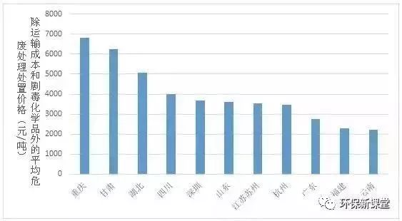 圖1.不完全統(tǒng)計各地危廢處理處置平均指導(dǎo)價