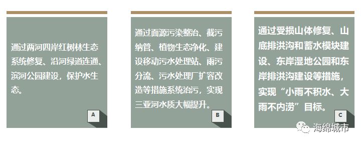 1丨在試點改造中,三亞將河道違建拆除,拓寬河道,讓濕地水系與紅樹林生態(tài)公園、三亞東河水系全面貫通,濕地涵養(yǎng)水源可以達到逾80萬立方米,基本可以實現(xiàn)城市生態(tài)系統(tǒng)滯、凈、用有機結(jié)合,最大程度保證城市海綿的系統(tǒng)效應(yīng)。
