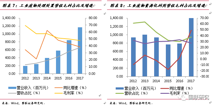 危廢的無害化和資源化為公司收入與毛利的主要來源。2017年,兩項(xiàng)業(yè)務(wù)收入分別實(shí)現(xiàn)11.67億元、11.82億元,同比增長(zhǎng)38.44%、49.33%,合計(jì)占營(yíng)收比為75.78%,比上年提高13.33個(gè)百分點(diǎn);毛利占比分別為47.74%和27.28%。工業(yè)危廢處置業(yè)務(wù)的快速增長(zhǎng)受益于目前危廢處置行業(yè)的市場(chǎng)高景氣度,公司聚焦主業(yè),不斷加大危廢項(xiàng)目拓展力度,產(chǎn)能總規(guī)模及釋放規(guī)模都在穩(wěn)步提升,不斷優(yōu)化戰(zhàn)略布局,加快在珠三角及西南地區(qū)的項(xiàng)目收購(gòu),實(shí)現(xiàn)了危廢處置業(yè)務(wù)的快速增長(zhǎng)。