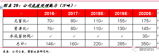 公司始終專注于危險(xiǎn)廢物的無害化處理及資源化利用,憑借自身突出的技術(shù)優(yōu)勢(shì)、資深的管理經(jīng)驗(yàn)以及資本優(yōu)勢(shì)等,公司在危廢處理行業(yè)持續(xù)鞏固龍頭運(yùn)營(yíng)商的地位。截至2017年,公司擁有工業(yè)危險(xiǎn)廢物處理資質(zhì)達(dá)160萬噸/年,在行業(yè)內(nèi)遙遙領(lǐng)先。按照公司未來幾年規(guī)劃產(chǎn)能,2020年預(yù)計(jì)公司將擁有350萬噸/年的綜合治理產(chǎn)能,包括水泥窯協(xié)同處置產(chǎn)能,CAGR達(dá)29.81%。對(duì)比我們上文對(duì)公司未來產(chǎn)能空間的測(cè)算,假設(shè)市占率2.26%保持不變,公司預(yù)期產(chǎn)能352.8萬噸,所以我們判斷公司規(guī)劃的產(chǎn)能實(shí)現(xiàn)概率很高。