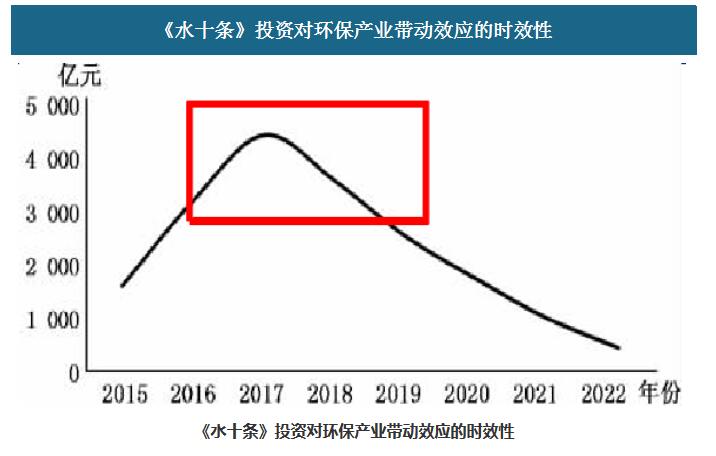 《水十條》投資對水污染防治設備制造業(yè)和環(huán)境監(jiān)測儀器設備制造業(yè)兩大領域的帶動作用最強,2016-2019年是投資需求釋放高峰期。根據(jù)環(huán)境保護部環(huán)境規(guī)劃院測算,水污染防治設備制造業(yè)和環(huán)境監(jiān)測儀器設備制造業(yè)兩大領域帶動作用最強,而《水十條》提出對工業(yè)廢水、城市水體、流域湖泊治理要求決定對該細分領域的高需求帶動。實施《水十條》投資將為涉及水治理的高新技術及裝備制造業(yè)帶來諸多機會,對廢水處理更加細化的規(guī)定增加了企業(yè)的處理需求。2016-2019年《水十條》對于環(huán)保產(chǎn)業(yè)帶動效應明顯,也是環(huán)保產(chǎn)業(yè)訂單釋放的集中階段。