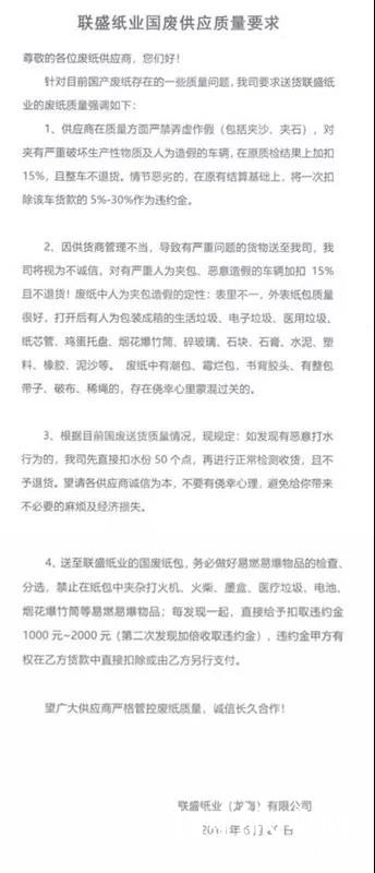 目前,不少造紙企業(yè)選擇放棄或減少進(jìn)口廢紙。山鷹國(guó)際相關(guān)負(fù)責(zé)人表示,預(yù)計(jì)今年公司的廢紙進(jìn)口量會(huì)比去年下降20%,而這一缺口需要國(guó)內(nèi)廢紙來(lái)彌補(bǔ)。