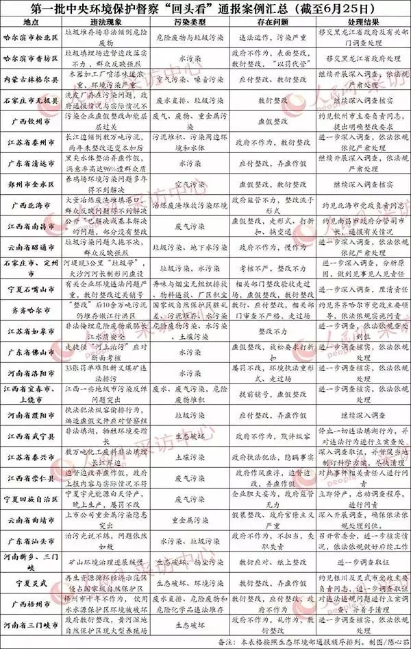 第一批中央環(huán)保督查“回頭看”通報案例匯總(截至6月25日)。
