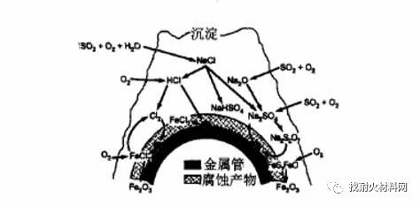 垃圾焚燒中的堿金屬氧化物,也是鍋爐高溫腐蝕的一個重要因素。這些堿金屬氧化物與HCl反應,形成堿金屬氯化物,然后冷凝沉淀在表面。沉積鹽中基于金屬氯化物硫酸鹽化作用機制,可見以下化學反應式: