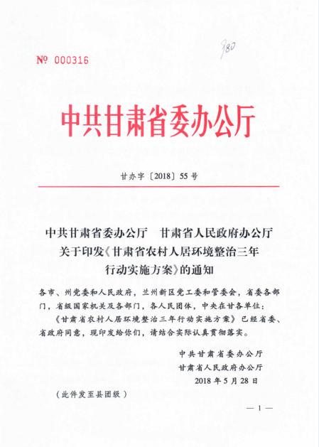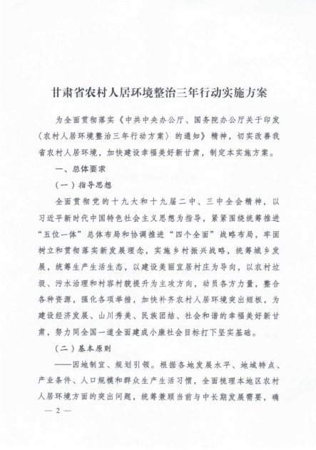 中共甘肅省委辦公廳甘肅省人民政府辦公廳關于印發(fā)《甘肅省農(nóng)村人居環(huán)境整治三年行動實施方案》的通知