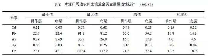 從統(tǒng)計(jì)結(jié)果來看,水泥廠周邊農(nóng)田土壤重金屬Cd 污染最為嚴(yán)重,且耕作層Cd 全量和有效態(tài)含量均高于底層土壤含量,表明該區(qū)域Cd來源為外源污染。