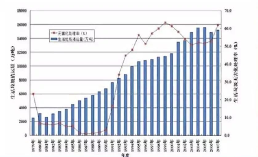 另外一個(gè)我們要注意的,這個(gè)表格里面統(tǒng)計(jì)的是城市的生活垃圾。而我們廣大的農(nóng)村的垃圾并沒有統(tǒng)計(jì)在里面。