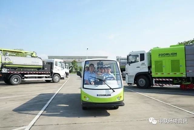 中聯(lián)環(huán)境CEO張建國、執(zhí)行總裁陳培亮陪同介紹了中聯(lián)環(huán)境無人駕駛掃路車,智能環(huán)衛(wèi)云平臺、智能垃圾箱、村鎮(zhèn)污水處理設(shè)備、新能源環(huán)衛(wèi)裝備等創(chuàng)新型產(chǎn)品,還參觀智能流水線制造車間。