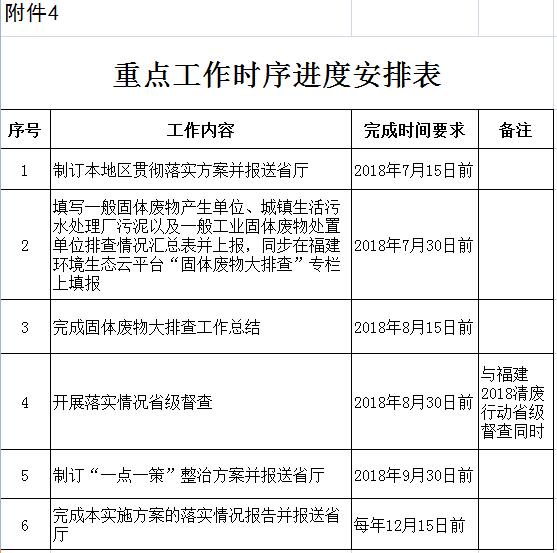 ---2018年7月30日前,市級環(huán)保部門在縣級環(huán)保部門填報的基礎(chǔ)上,將一般固體廢物產(chǎn)生單位、城鎮(zhèn)生活污水處理廠污泥以及一般工業(yè)固體廢物處置單位排查情況匯總表(附件1、2、3)上報省環(huán)保廳,并同步在福建環(huán)境生態(tài)云平臺“固體廢物大排查”專欄上填報。