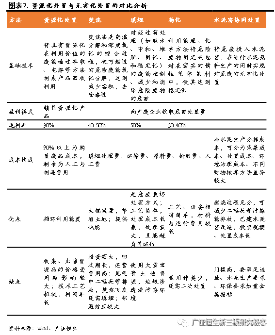 由于無害化的產(chǎn)能短缺,危廢無害化處理的盈利能力比資源化好,一般資源化的毛利率在20%-30%之間,而無害化的毛利率可以高達50%以上。