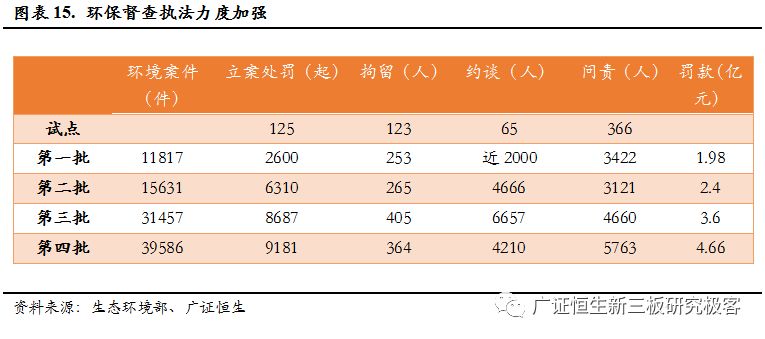 四批的中央環(huán)保督查,處理環(huán)保案件近十萬起,立案處罰2.69萬起,問責1.7萬人,罰款12.64億元,極大的增加了環(huán)境違法的成本。