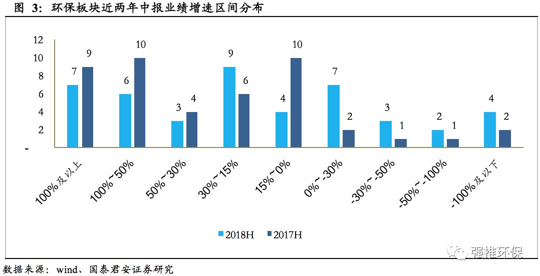 摘要:環(huán)保板塊半年報(bào)預(yù)告增速為-9.7%-9.9%,剔除異常公司后增速為7.6%-29.1%,回落明顯。環(huán)保板塊共有45家上市公司披露業(yè)績預(yù)告,板塊增速在-9.7%-9.9%之間,相對于上年同期環(huán)保板塊整體49.4%的凈利潤增速下滑明顯;剔除掉神霧環(huán)保、神霧節(jié)能、盛運(yùn)環(huán)保等經(jīng)營異常公司后,環(huán)保板塊披露業(yè)績預(yù)告的凈利潤增速區(qū)間在7.6%~29.1%之間,仍較這些可比樣本公司上年同期36.7%的凈利潤增速有所下滑。