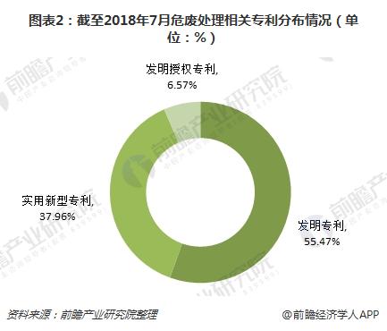 截至2018年7月2日,危廢處理技術(shù)專(zhuān)利申請(qǐng)總量只有137項(xiàng)。其中,發(fā)明專(zhuān)利數(shù)最多,達(dá)到76項(xiàng),占比為55.47%;實(shí)用新型專(zhuān)利數(shù)其次,為52項(xiàng),占比為37.96%;發(fā)明授權(quán)專(zhuān)利數(shù)占比為6.57%。可見(jiàn),我國(guó)危廢處理行業(yè)技術(shù)還有很大進(jìn)步空間,目前處于較低水平。