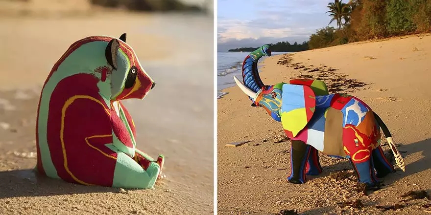 當(dāng)他將廢棄拖鞋制成異想天開的動(dòng)物雕塑時(shí)