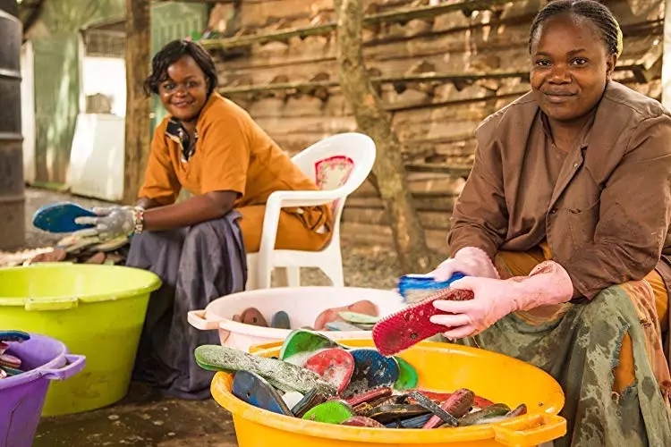 1998年,肯尼亞的環(huán)保主義者Julie Church在看到海洋環(huán)境的惡化之后,感到無比痛心,下定決心一定要幫助當(dāng)?shù)厝烁淖儛毫拥沫h(huán)境。2005年,Julie成立了肯尼亞海洋保護(hù)組織——Ocean Sole。致力于海灘環(huán)境保護(hù),同時(shí)也為當(dāng)?shù)氐牡褪杖肴巳禾峁┚蜆I(yè)崗位和穩(wěn)定收入。